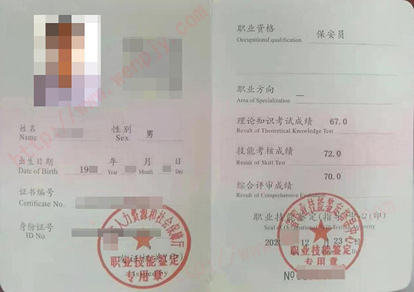 考试合格,颁发《保安员---高级/三级》、《保安员---技师/二级》证书。证书官网电子注册,可作为专业技术人员相关职业能力考核的有效证明。