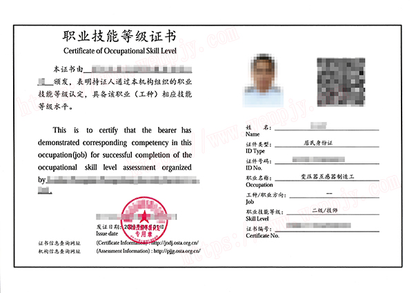 变压器互感器制造工---三级(高级工);变压器互感器制造工---二级(技师);变压器互感器制造工---一级(高级技师)。