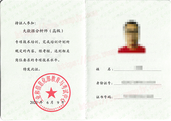 学员完成全部课程,考试合格,由工业和信息化部教育与考试中心颁发《大数据分析师(高级)》专项技术证书。证书官网电子注册,可作为专业技术人员相关职业能力考核的有效证明。