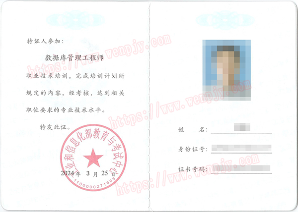 数据库管理工程师职业技术证书