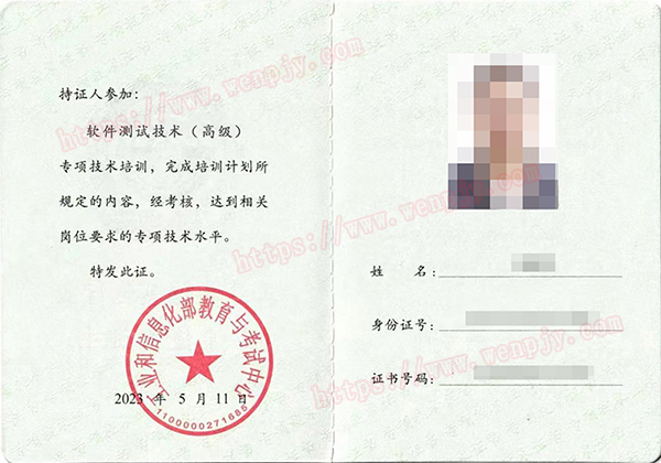 学员完成全部课程,考试合格,由工业和信息化部教育与考试中心颁发《软件测试技术(高级)》专项技术证书。证书官网电子注册,可作为专业技术人员相关职业能力考核的有效证明。