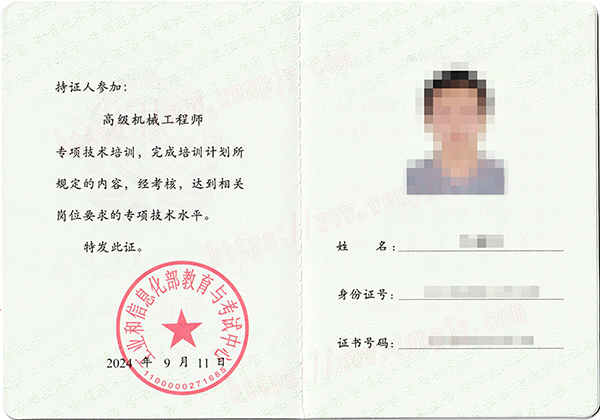 学员完成全部课程,考试合格,由工业和信息化部教育与考试中心颁发《高级机械工程师》专项技术证书。证书官网电子注册,可作为专业技术人员相关职业能力考核的有效证明。